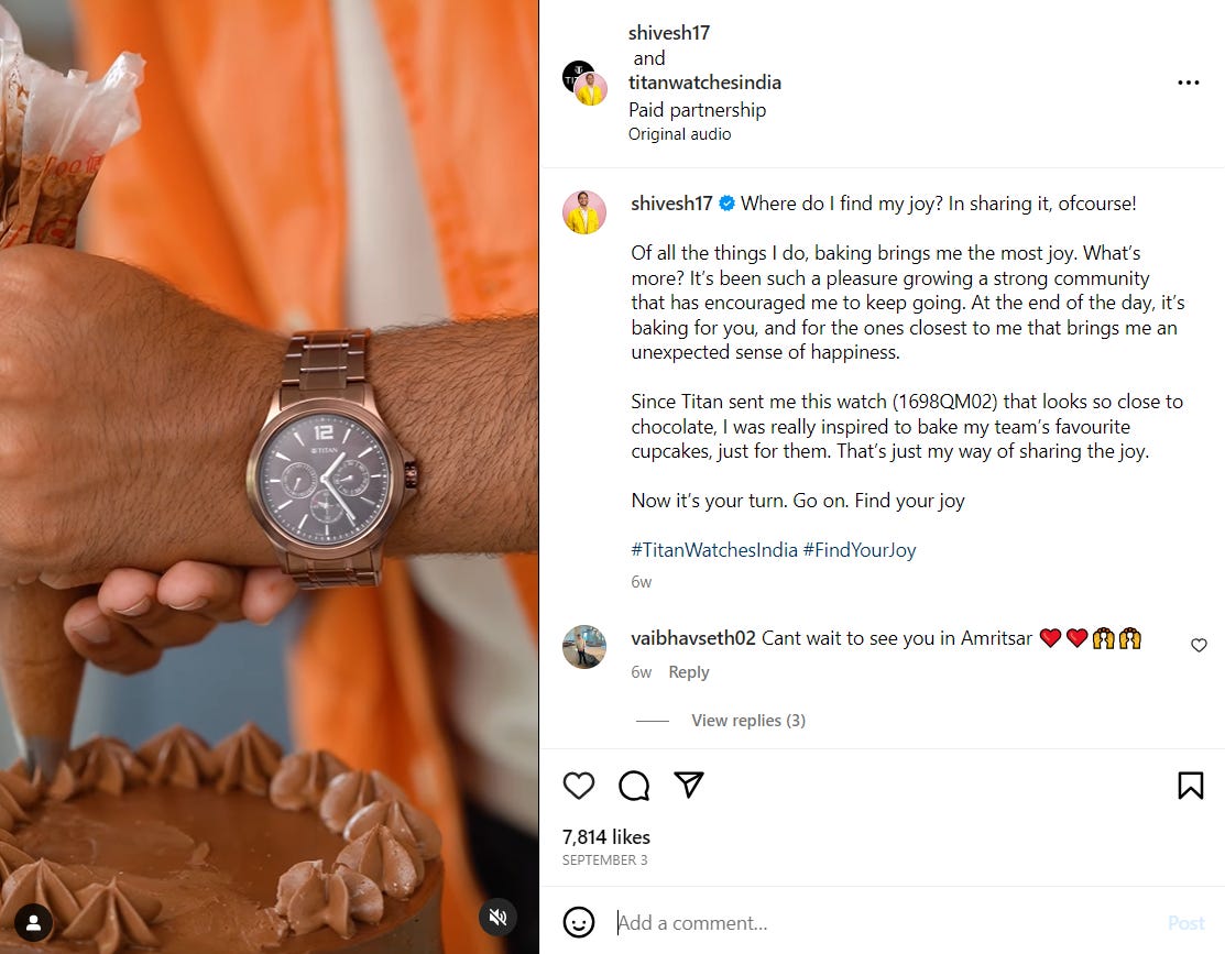Titan reached out to influencers in niche categories such as food and art through their #FindYourJoy campaign.